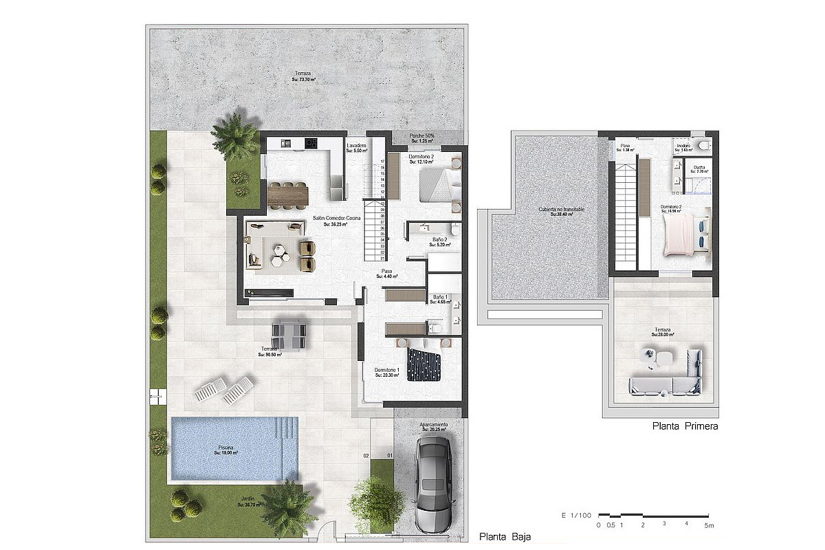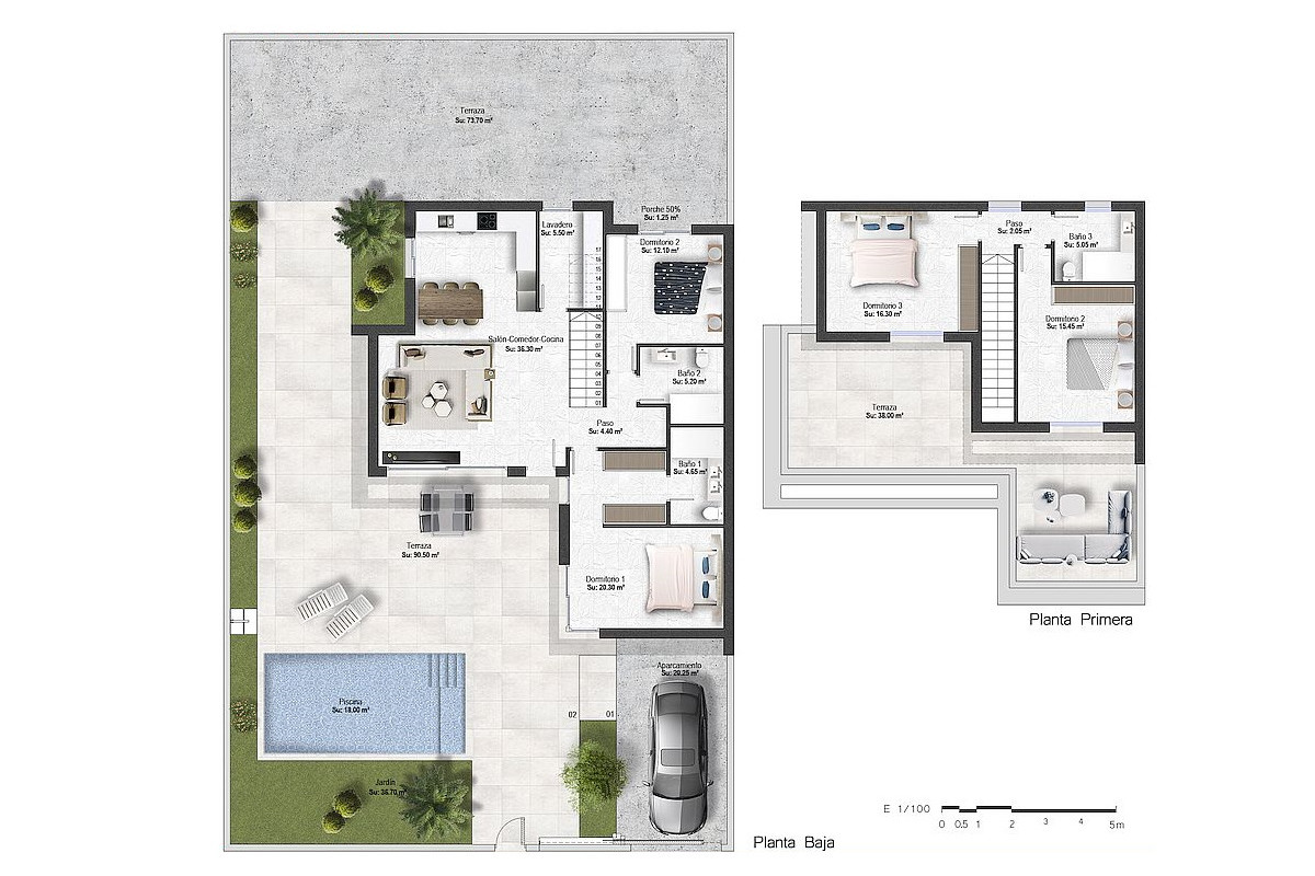 Нова акція «Montemar One Level» включає кілька типів вілл, з двома або трьома спальнями на першому поверсі, двома ванними кімнатами та приватним басейном з декількома варіантами.