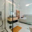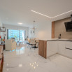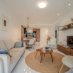 The apartment offers a bright and spacious living-dining area that opens directly onto one of its two magnificent south-facing terraces, filling the interior with natural light throughout the day.