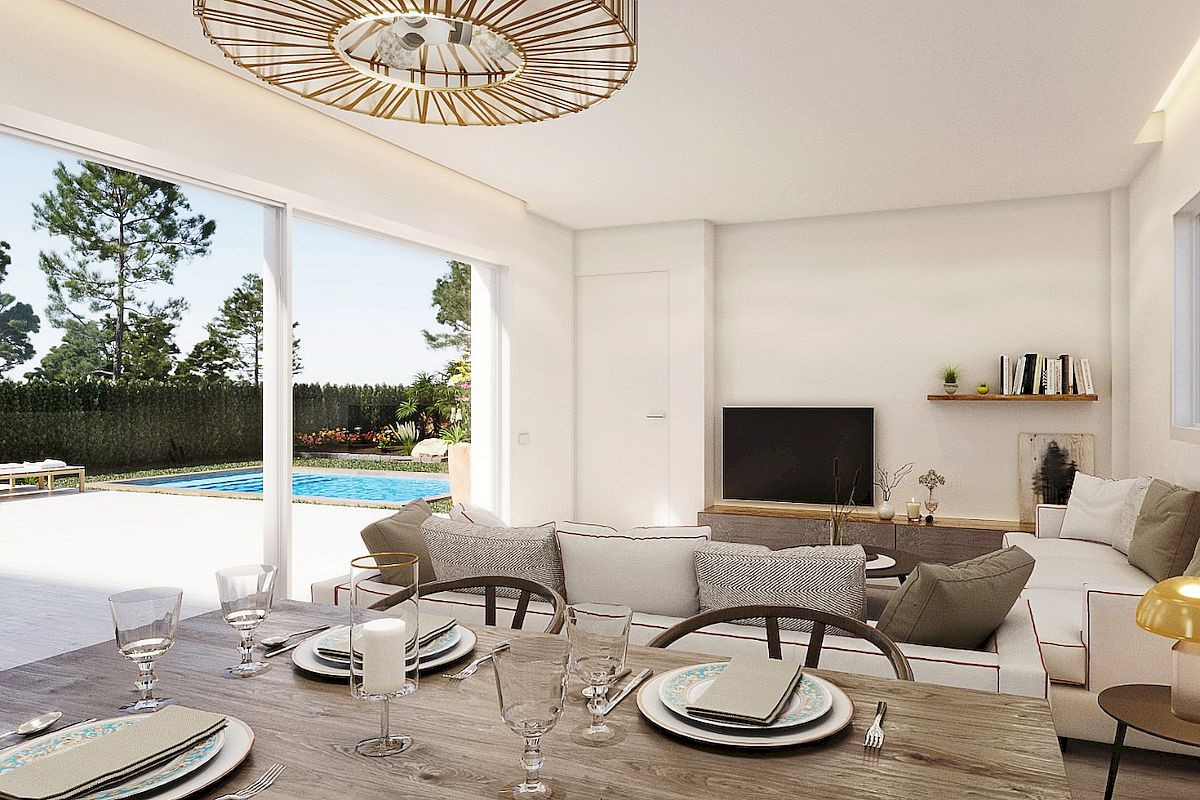 Двоповерховими віллами з 4 спальнями, 3 ванними кімнатами та терасою-солярієм на першому поверсі.