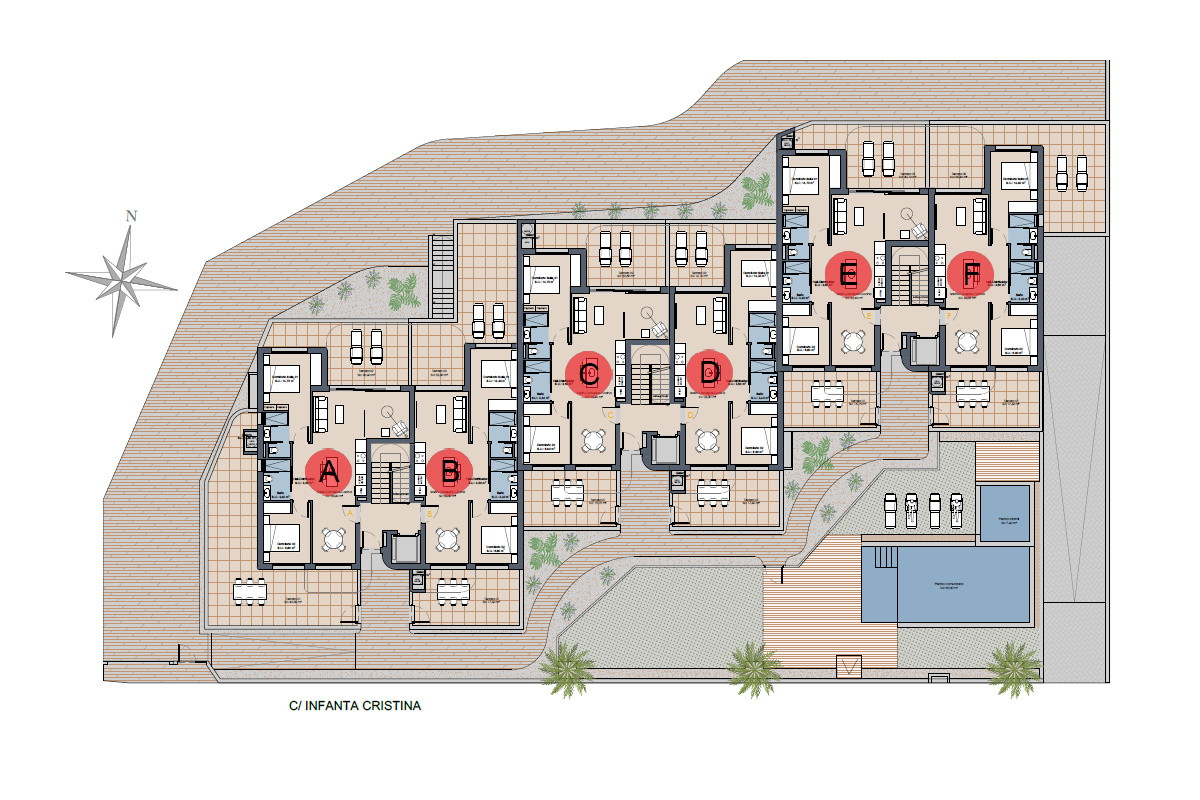 The ground floor apartments have private large terraces, the middle-floor units with terraces and Penthouses with two terraces, private solarium and panoramic views. The unbeatable location offers nice views to golf course and Mar Menor.