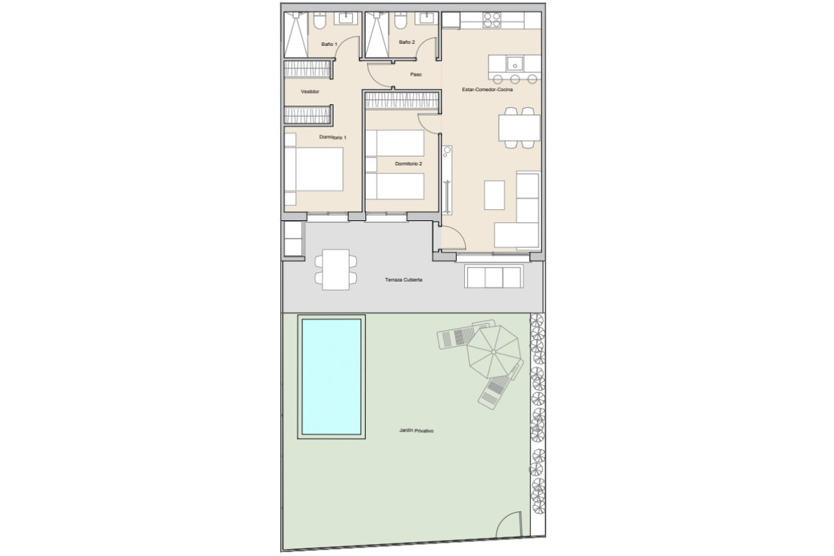 Комплекс пропонує апартаменти з 1, 2 або 3 спальнями, спроєктовані з урахуванням простору, світла та функціональності. Усі помешкання мають великі південні тераси, озеленені ділянки та доступ до розкішних спільних басейнів.