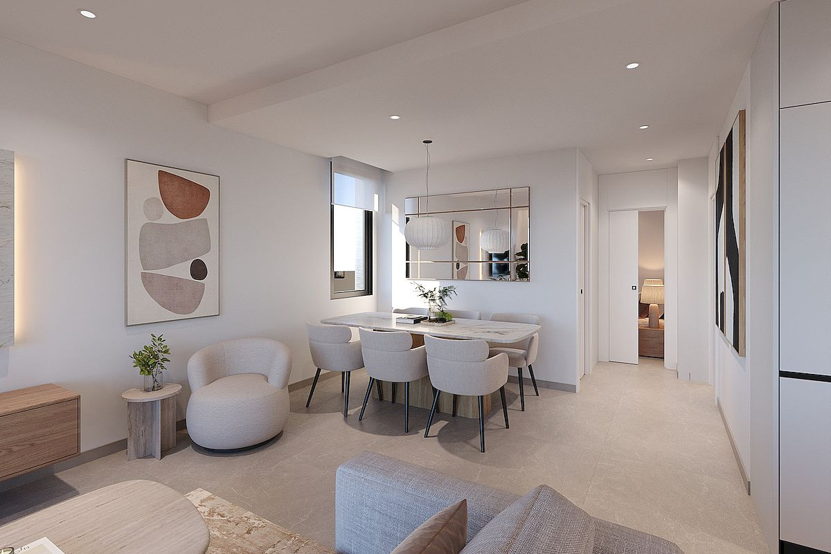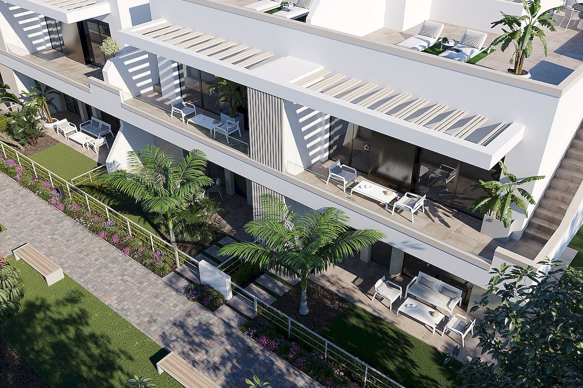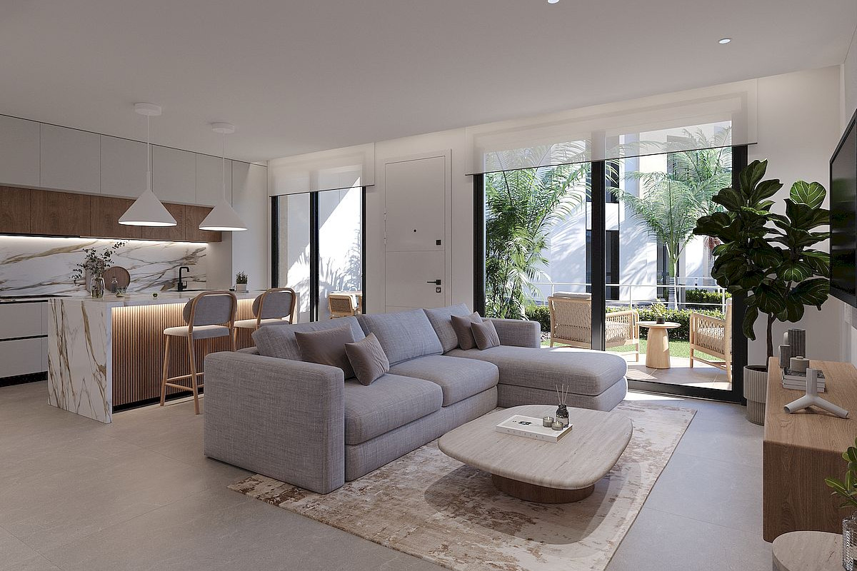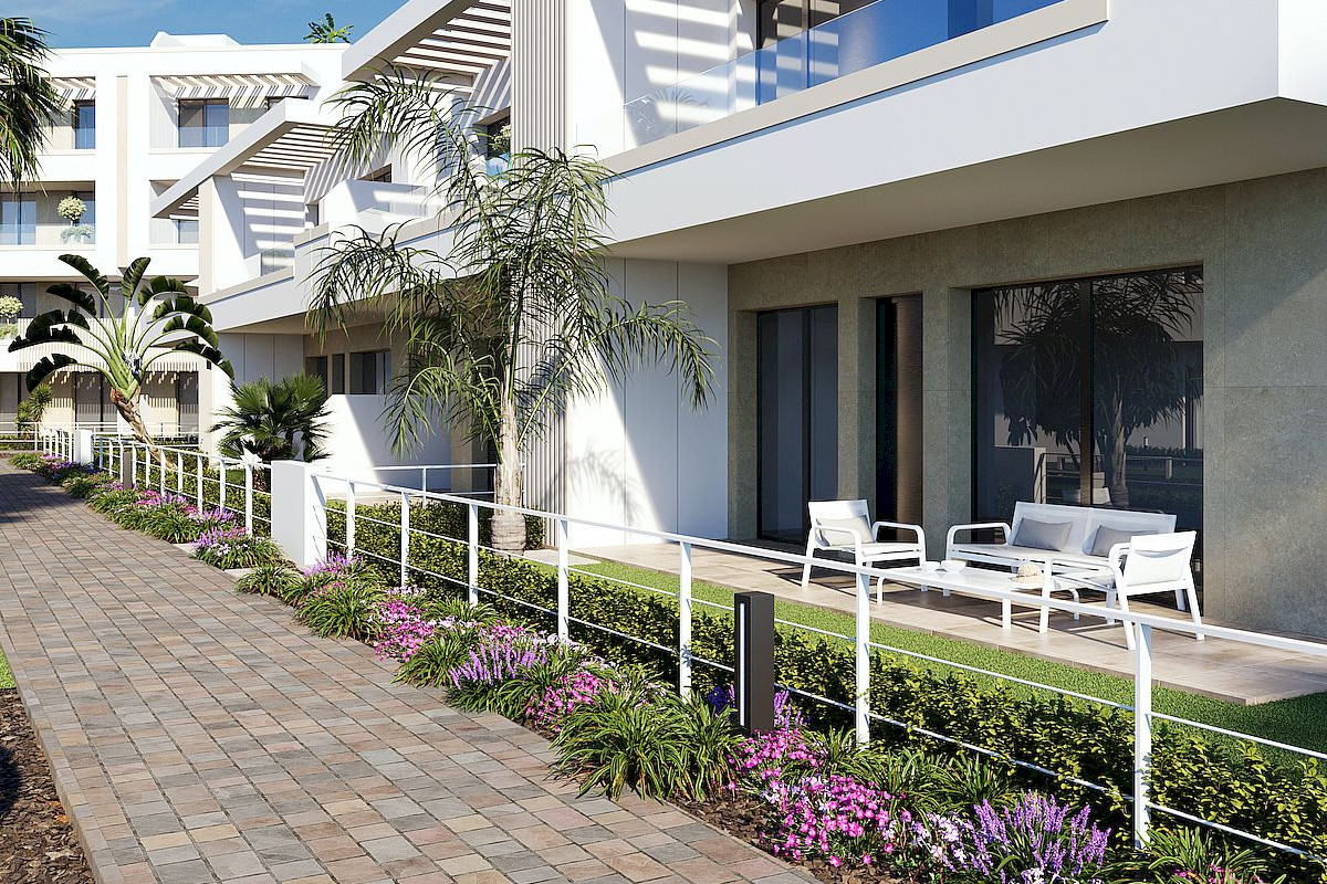 Choose between ground-floor maisonettes with spacious terraces or first-floor units boasting private terraces and solariums, with two bedrooms with fitted wardrobes and two contemporary-style bathrooms. All homes come with parking space and storage room.