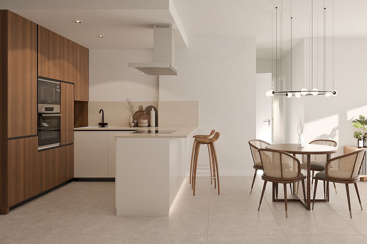 Усі апартаменти мають терасу, простору вітальню з їдальнею та кухнею відкритого планування, ванну кімнату та гостьовий туалет, а також дві спальні з вбудованими шафами, що створює затишні та функціональні житлові зони. Апартаменти на першому (цокольному) поверсі вирізняються великими терасами, тоді як апартаменти на третьому поверсі мають приватне соляріум-даху — ідеальне місце, щоб насолоджуватися сонцем, краєвидами та створити неповторну атмосферу для відпочинку.