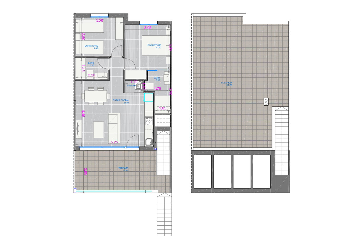 Мезонет на верхньому поверсі включає вітальню з панорамними дверима, що ведуть на терасу, сучасну кухню відкритого планування, пральню/господарське приміщення, обідню зону, головну спальню з вбудованими шафами та ванною кімнатою en suite, ще одну двомісну спальню та гостьову ванну кімнату. Сходи з тераси ведуть до приватного солярію на даху, де можна насолоджуватися сонцем протягом усього дня.
