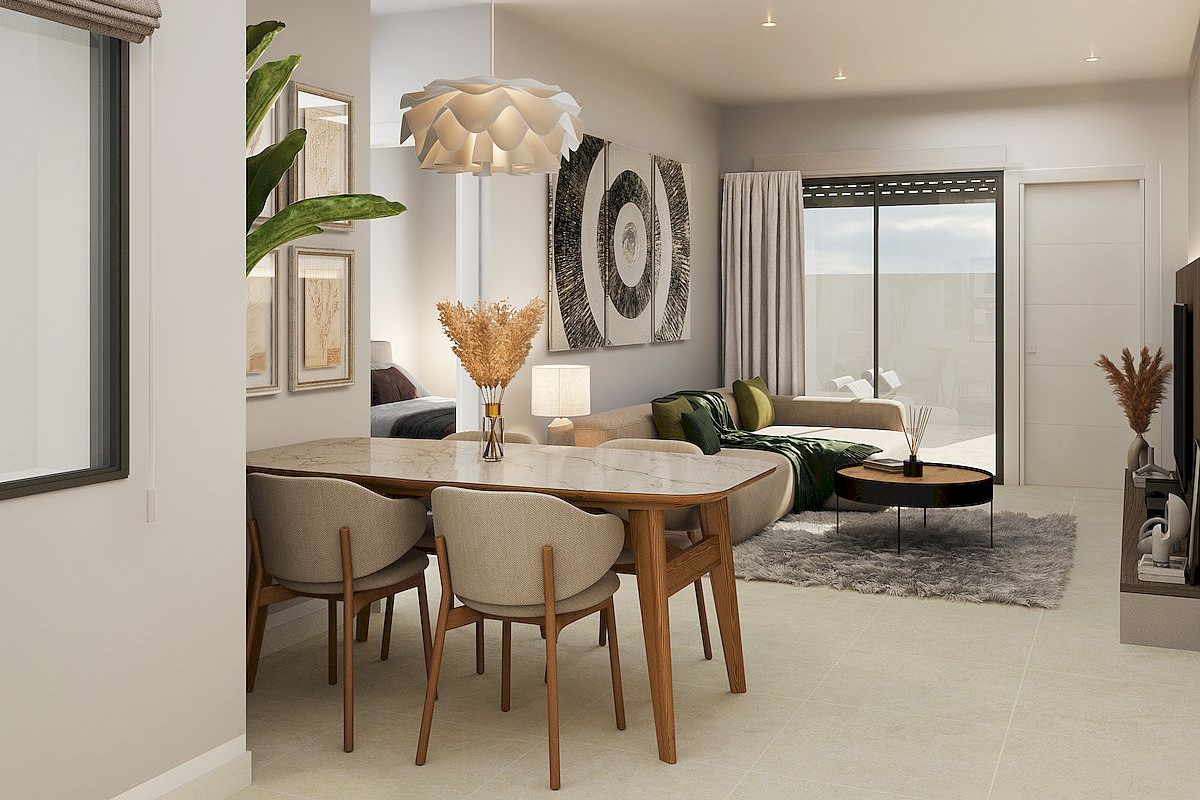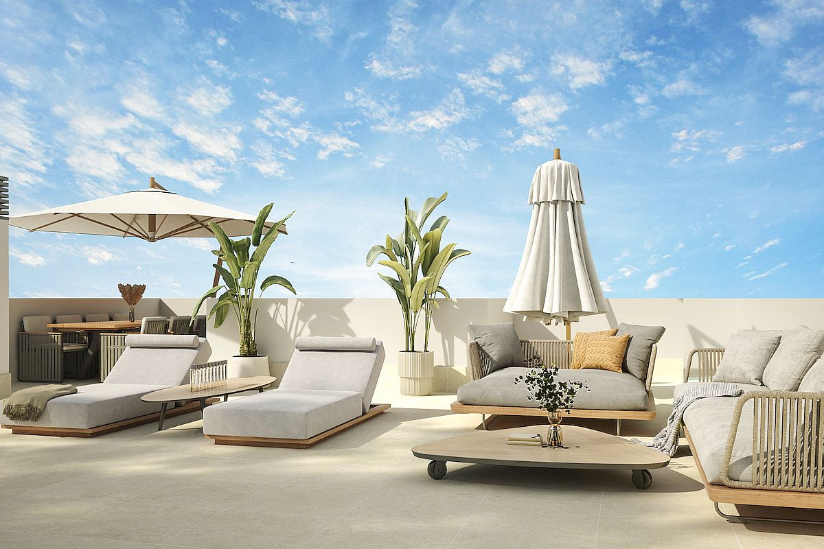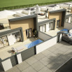 Усі будинки збудовані на одному рівні та спроєктовані з практичним і світлим плануванням. Вони пропонують дві або три спальні та дві ванні кімнати, включно з головною спальнею з власною ванною кімнатою (en suite). Кожна нерухомість має передню терасу, приватний задній патіо та просторий соляріум на даху, що дозволяє насолоджуватися сонцем протягом усього року й створює кілька зон для відпочинку та прийому гостей. Приватний сад включає басейн і паркувальне місце на території ділянки, забезпечуючи комфорт і приватність для кожного власника.