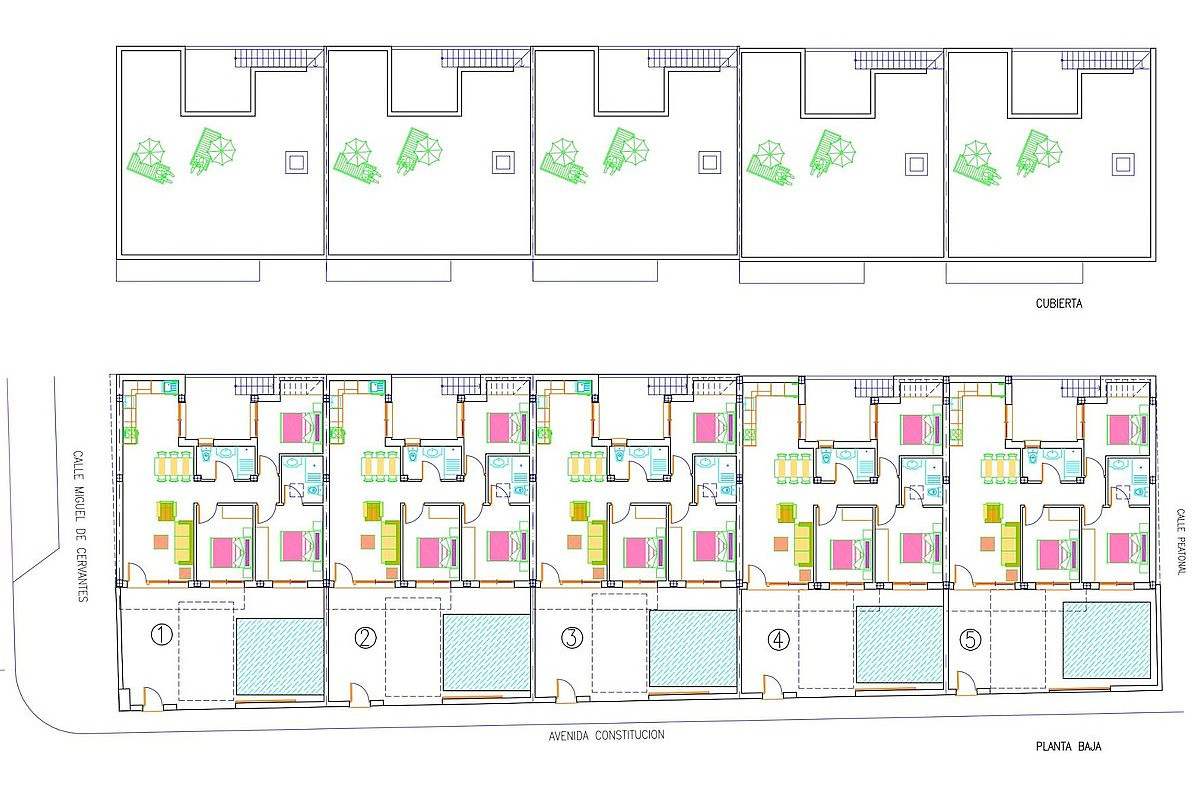 Новий житловий комплекс складається з п’яти сучасних одноповерхових будинків із приватним басейном, розташованих в Авілесесі — спокійному традиційному іспанському селищі в регіоні Мурсія.