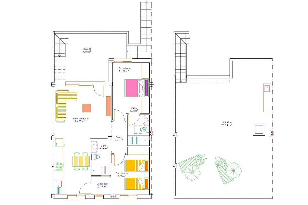 Можна обирати між квартирами на першому поверсі з 3 спальнями та 2 ванними кімнатами, одна з яких — ванна кімната в головній спальні, із передньою терасою та приватним заднім садом із літньою кухнею. Альтернативно, апартаменти на верхньому поверсі пропонують 2 спальні та 2 ванні кімнати, одна з яких — у головній спальні, передню терасу та великий приватний солярій із літньою кухнею, ідеальний для відпочинку на сонці протягом усього року.
