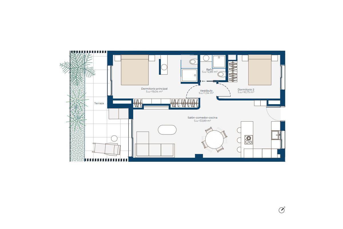 Будинок має п’ять поверхів, а планування інтер’єру включає світлу та простору вітальню та обідню зону відкритого типу з великими вікнами, що виходять на терасу. У головному житловому просторі розташована сучасна кухня американського типу з настінними та нижніми шафами та центральним островом. Велика головна спальня має власну ванну кімнату та двері на головну терасу. Є ще одна простора спальня та окрема ванна кімната для гостей. Пентхауси мають зовнішню сходи на терасі, що веде до великого солярію на даху, де можна насолоджуватися сонцем протягом усього дня та відкритими видами.