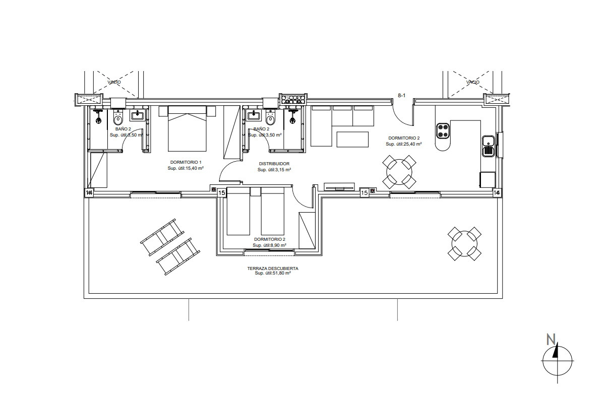 Апартаменти пропонують одну, дві або три просторі спальні та одну або дві ванні кімнати, а також великі тераси. Житлова зона світла та виконана у відкритому плануванні, з великими вікнами, що забезпечують плавний перехід на терасу. Відкрита кухня повністю оснащена висококласною технікою Bosch або Siemens та оздоблена преміальними матеріалами Porcelanosa. Кожна деталь відображає довговічність і вишуканість.
