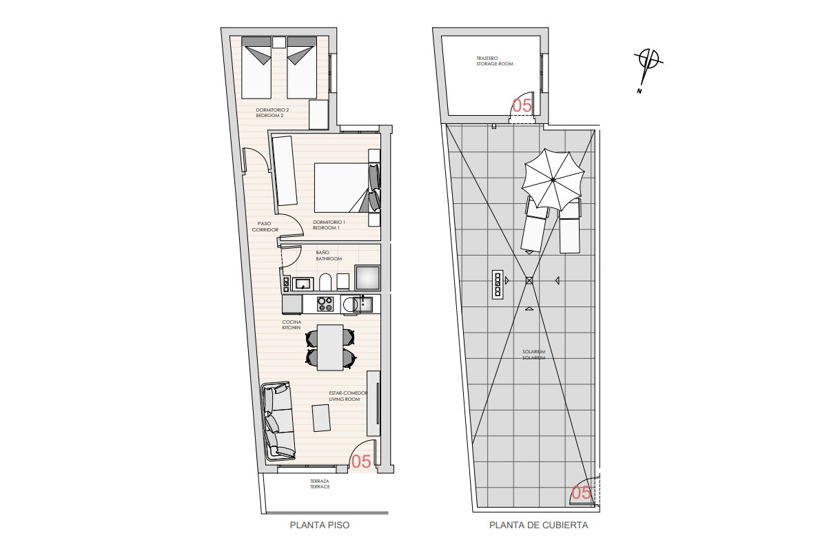 Мезонети на першому поверсі мають передні тераси та задні патіо. Мезонети на верхньому поверсі обладнані приватним солярієм з коморою – ідеальне місце для відпочинку на сонці протягом усього року та насолоди чудовим середземноморським кліматом, характерним для цього регіону.