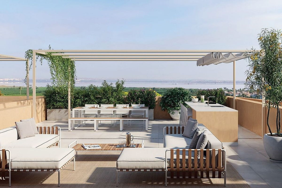 Покупці можуть обирати між мезонетами на першому поверсі з приватним садом або квартирами на верхніх поверхах із просторою терасою та приватним соляріумом. Мезонети на першому поверсі мають два приватні сади: один з видом на зовнішню частину комплексу, інший — на спільні зони, створюючи унікальні простори для відпочинку на свіжому повітрі. Квартири на верхніх поверхах із соляріумами пропонують привілейовані види на Лагуну-Роса — один із найвідоміших пейзажів Коста-Бланки. Кожна нерухомість включає приватне паркомісце та комору в підземному гаражі.