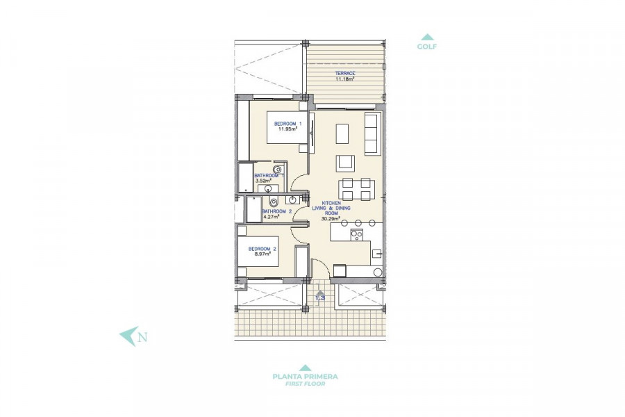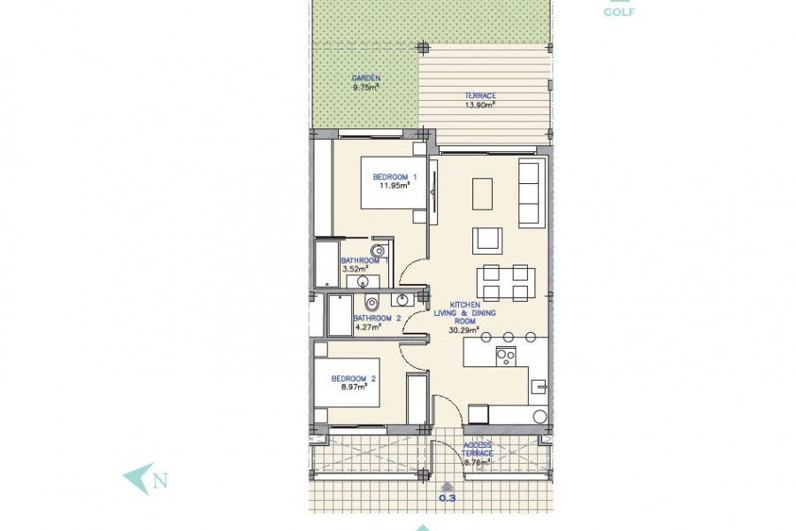 Нові житлові сучасні розкішні гольф-апартаменти з двома або трьома спальнями та двома ванними кімнатами розташовані... Перегляд »